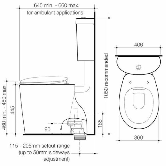 Care 200 V2 Connector (S Trap) Suite with Caravelle Care Single Flap Seat - Anthracite Grey